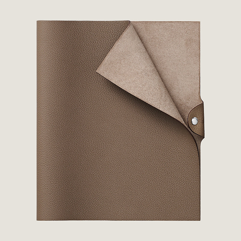 Couverture de cahier pour recharge en veau Togo, fermée par un bouton-pression « clou de selle » argenté palladié