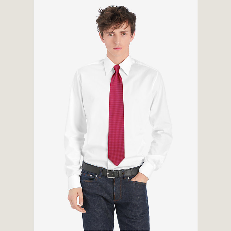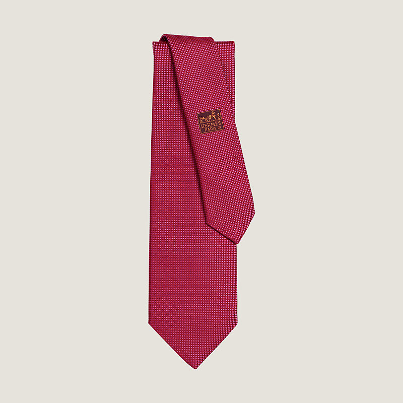 Par un jeu de lumière, le tissage Jacquard se révèle sur cette cravate unie. Un basique Hermès !