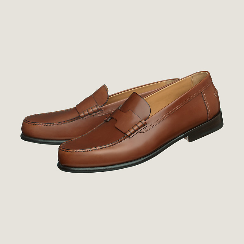 Mocassins « college » en veau Toscan, patte H apposée sur plateau cousu main, semelle en cuir