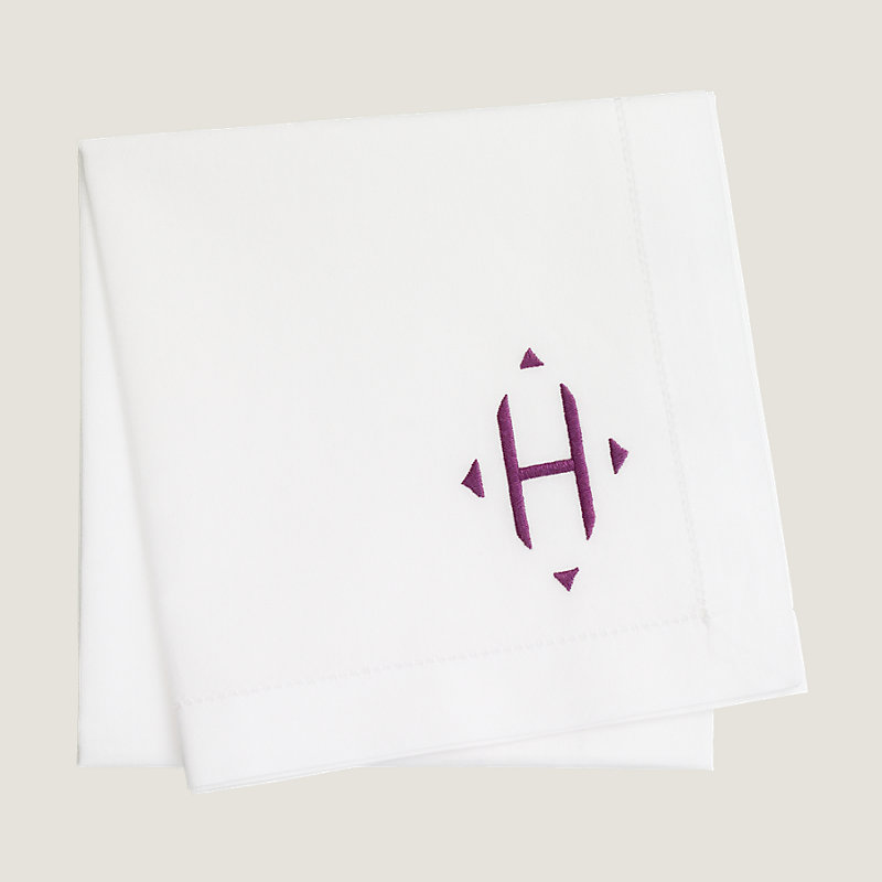 Mouchoir brodé et roulotté à la main, finitions « jour échelle » (100 % coton)