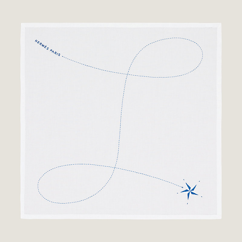 Mouchoir brodé et roulotté à la main, finition « Petit Jour » (100 % coton)