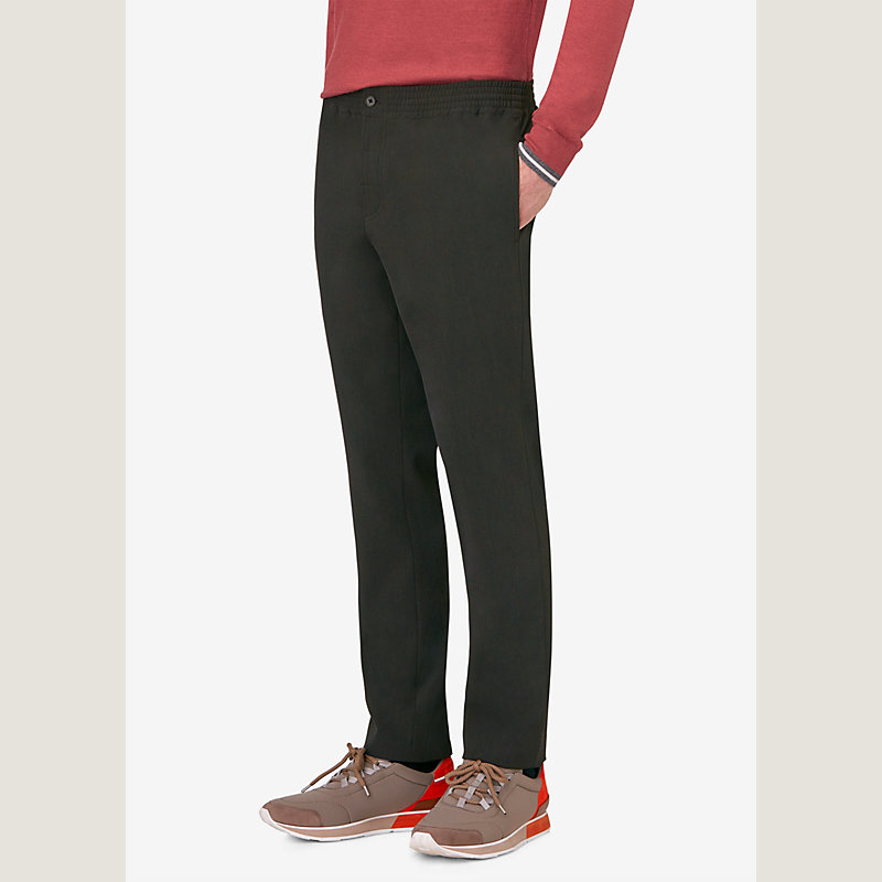 Pantalon Saint Germain élastiqué en sergé de laine stretch, ceinture élastiquée, jambe ajustée (97 % laine vierge, 3 % élasthanne)