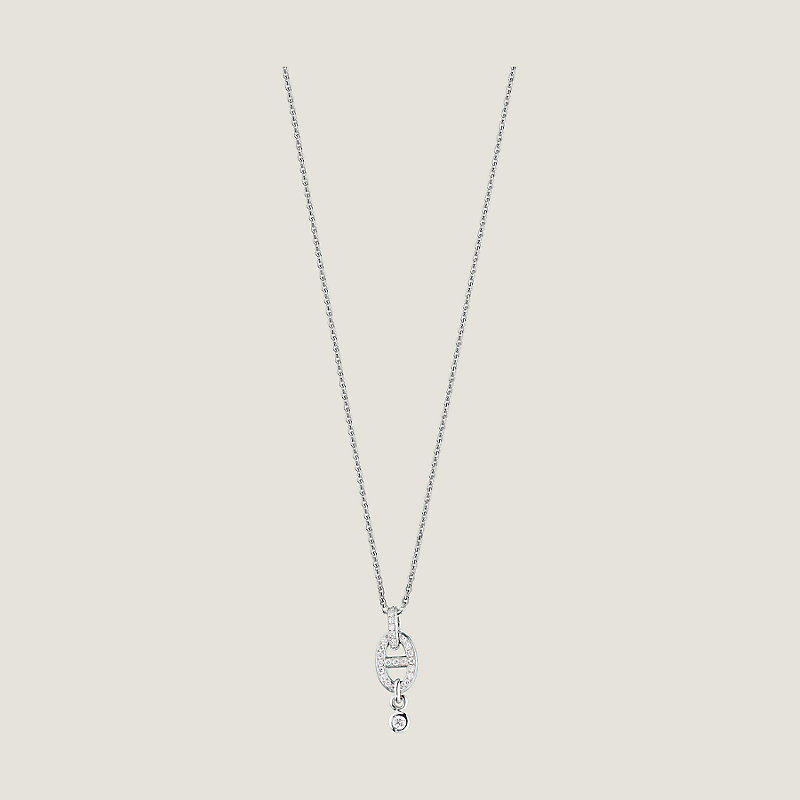 Pendentif en or blanc serti de 29 diamants sur chaîne ajustable