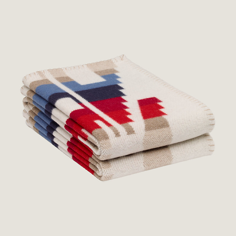 Plaid en laine Mérinos et cachemire jacquard, 90 % laine Mérinos 10 % cachemire