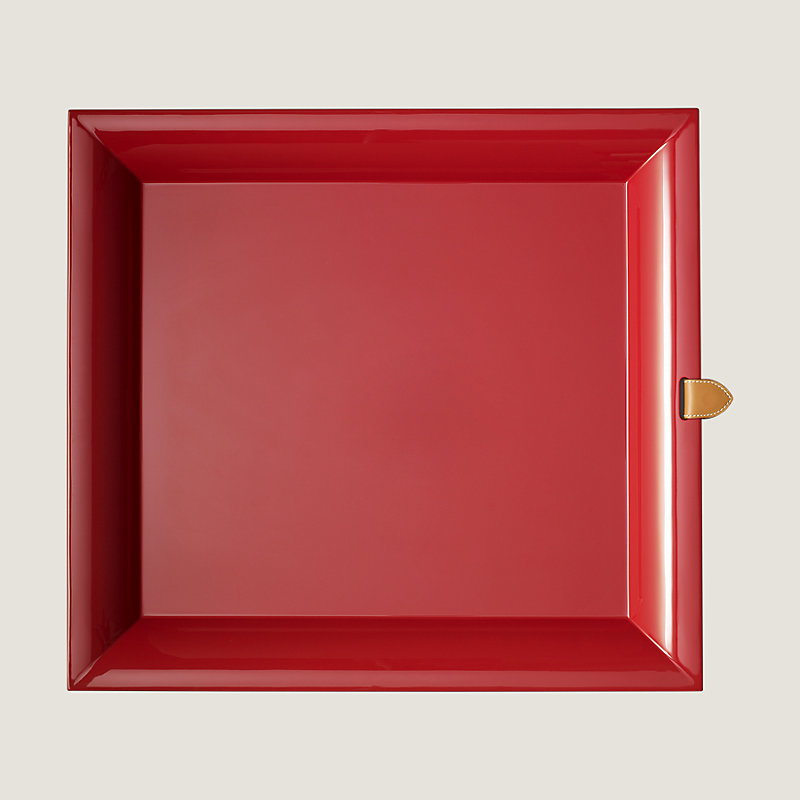 Plateau grand modèle en bois laqué main et patte en veau Chamonix