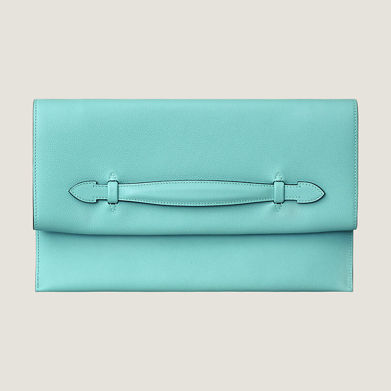Pochette en veau Evercolor, poignée et patte de fermeture souples, à porter au poignet, sous le bras, ou à glisser dans son sac