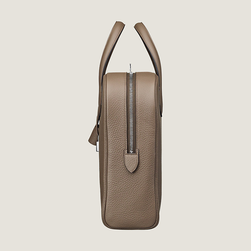 Sac porte-documents en taurillon Clémence, bijouterie argent palladié, fermeture à glissière