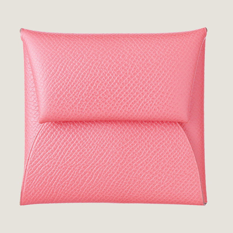 Porte-monnaie plié en veau Epsom, fermé par un bouton-pression argenté palladié