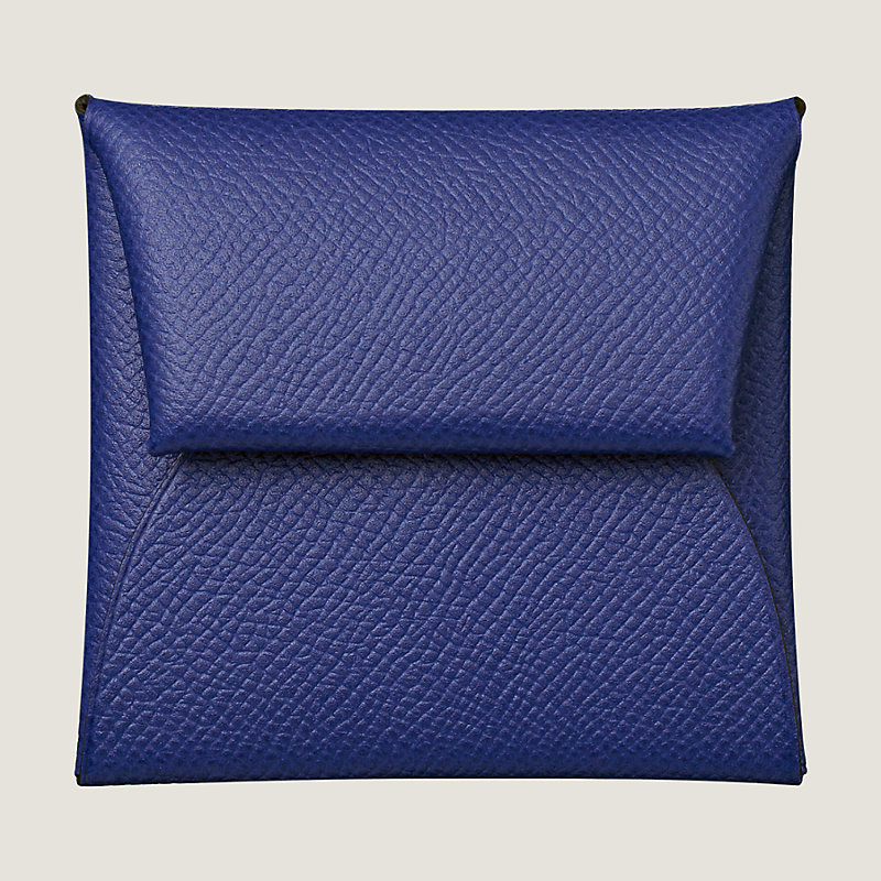 Porte-monnaie plié en veau Epsom, fermé par un bouton-pression argenté palladié