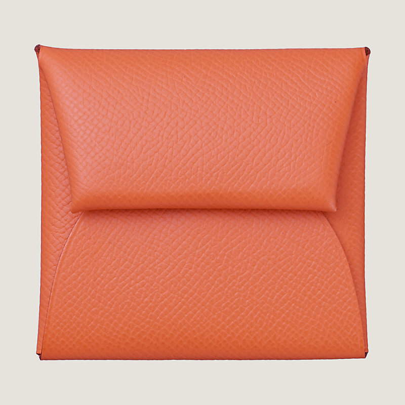 Porte-monnaie plié en veau Epsom, fermé par un bouton-pression argenté palladié