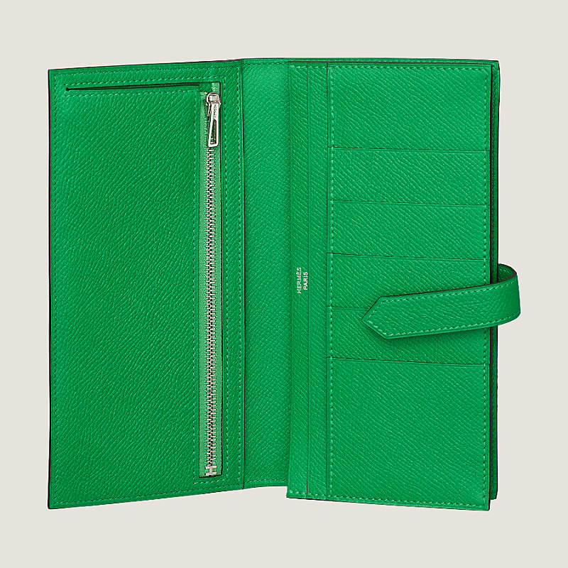 Portefeuille à soufflet en veau Epsom, fermé par une patte en cuir et un fermoir « H » argenté palladié