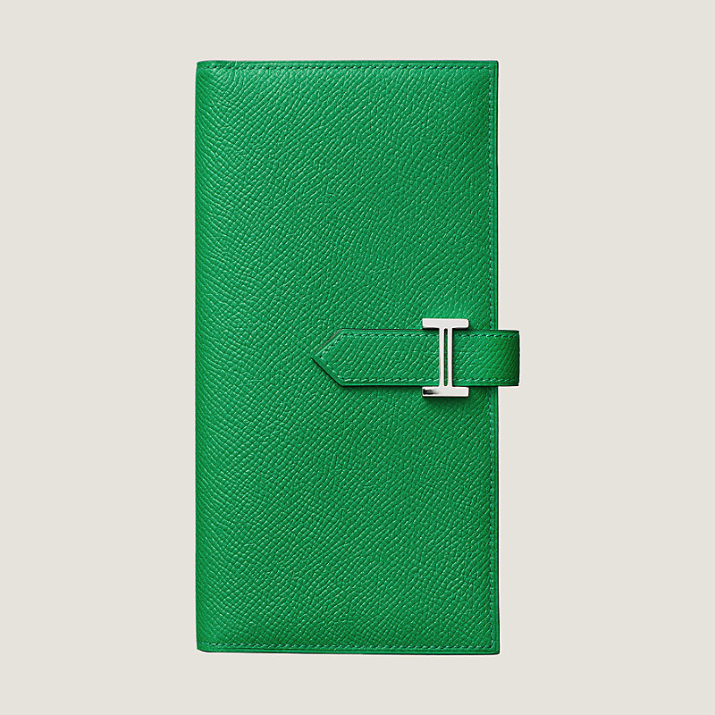 Portefeuille à soufflet en veau Epsom, fermé par une patte en cuir et un fermoir « H » argenté palladié