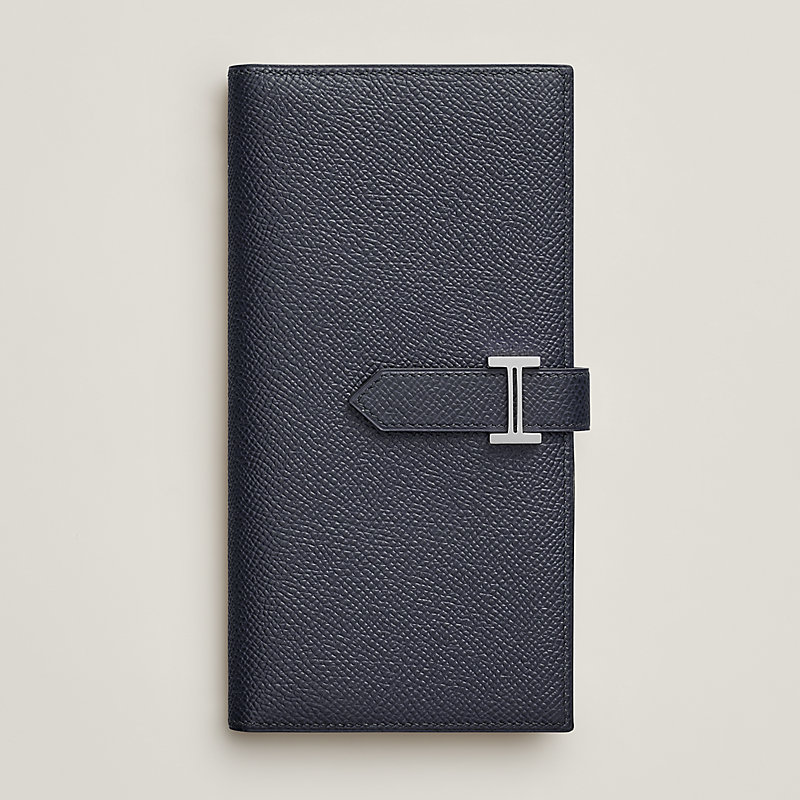 Portefeuille à soufflet en veau Epsom, fermé par une patte en cuir et un fermoir « H » argenté palladié