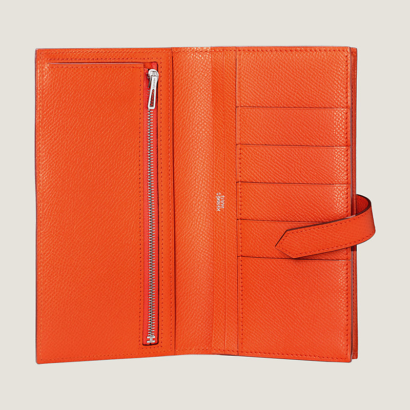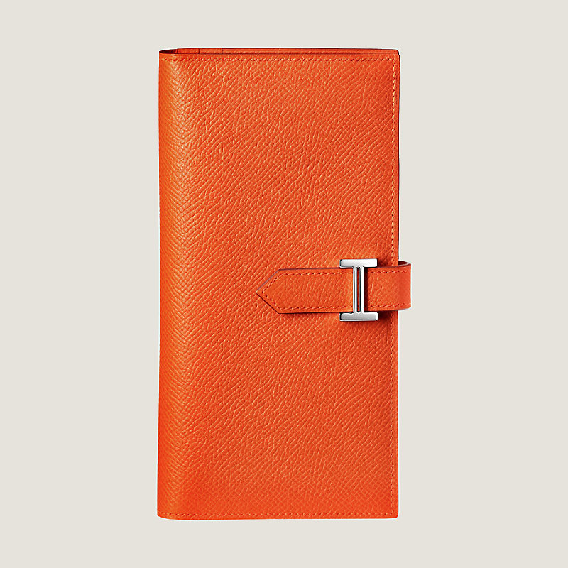 Portefeuille à soufflet en veau Epsom, fermé par une patte en cuir et un fermoir « H » argenté palladié