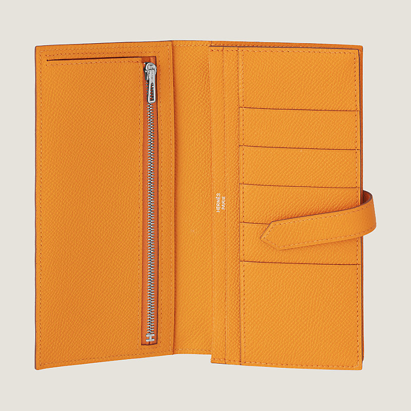 Portefeuille à soufflet en veau Epsom, fermé par une patte en cuir et un fermoir « H » argenté palladié
