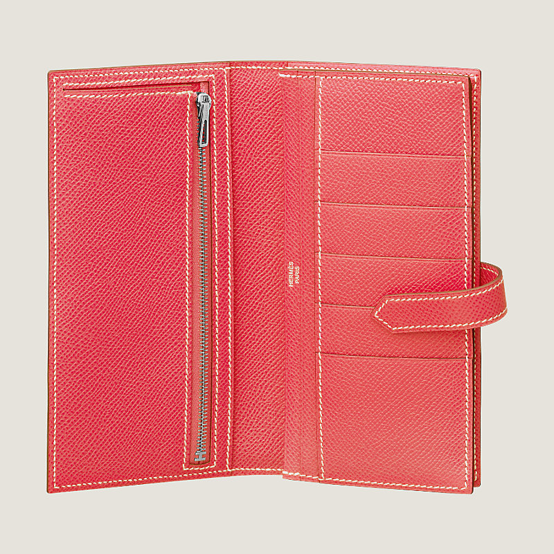 Portefeuille à soufflet en veau Epsom, fermé par une patte en cuir et un fermoir « H » argenté palladié