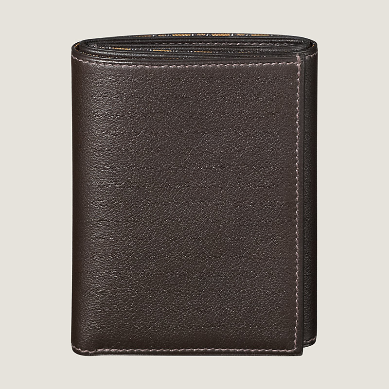Portefeuille en veau Swift, doublé en soie imprimée "Petit Fil d'Argent". A l'intérieur : une poche centrale et quatre poches cartes de crédit