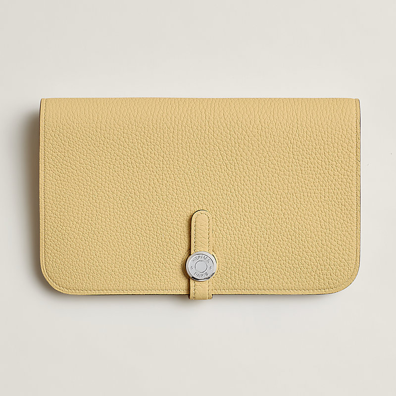 Portefeuille combiné en veau Togo, doublé en agneau, fermoir « clou de selle » argenté palladié