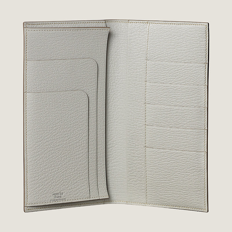 A l'intérieur : cinq poches cartes de crédit, une poche à billet et deux bas volets.