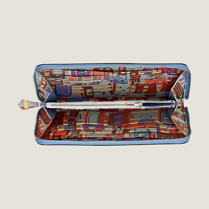 Portefeuille long en veau Epsom et veau Barénia, doublure en twill de soie imprimé « Colliers de chiens »