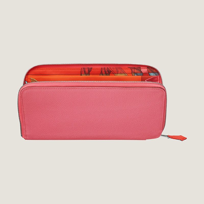 Portefeuille long zippé en veau Epsom, doublé en soie imprimée « Della Cavalleria », fermeture à glissière en métal argenté palladié
