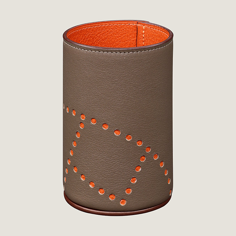 Pot à crayons en taurillon lisse et vache Velvet