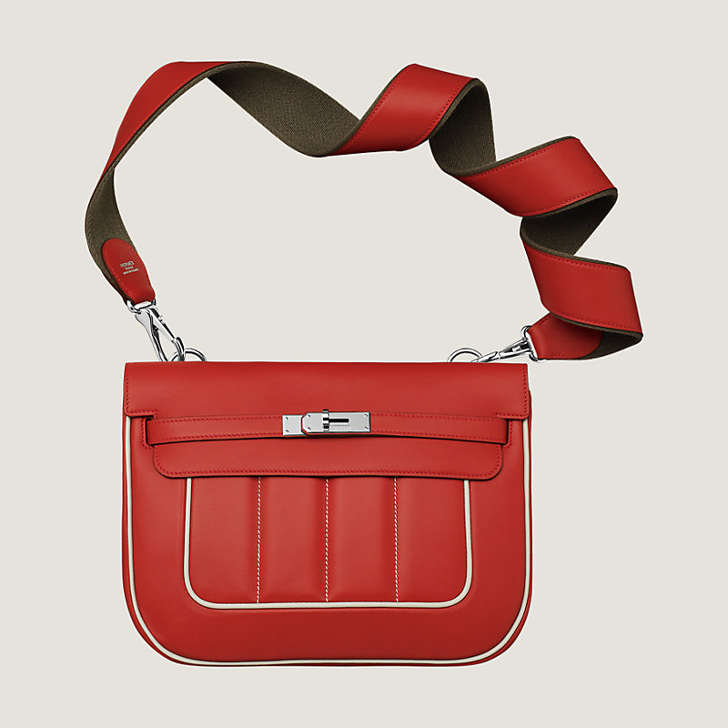 Sac en veau Swift, jonc et intérieur en veau Evercolor, garnitures finition argenté palladié, bandoulière pour un porté épaule ou croisé