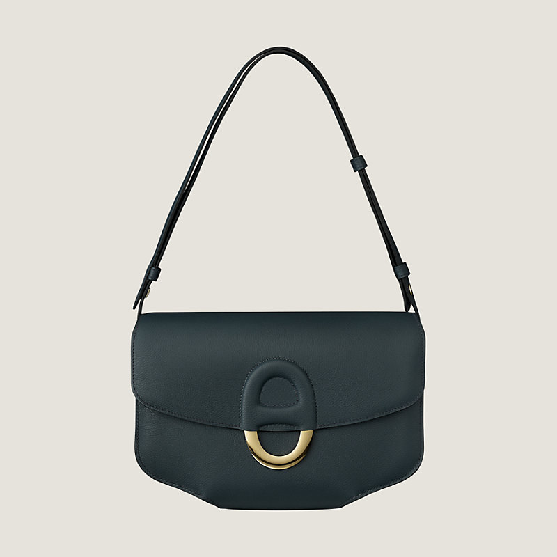 Sac en veau Evercolor, fermé par une patte en cuir et un bouton à pression, garnitures plaquées or, bandoulière réglable