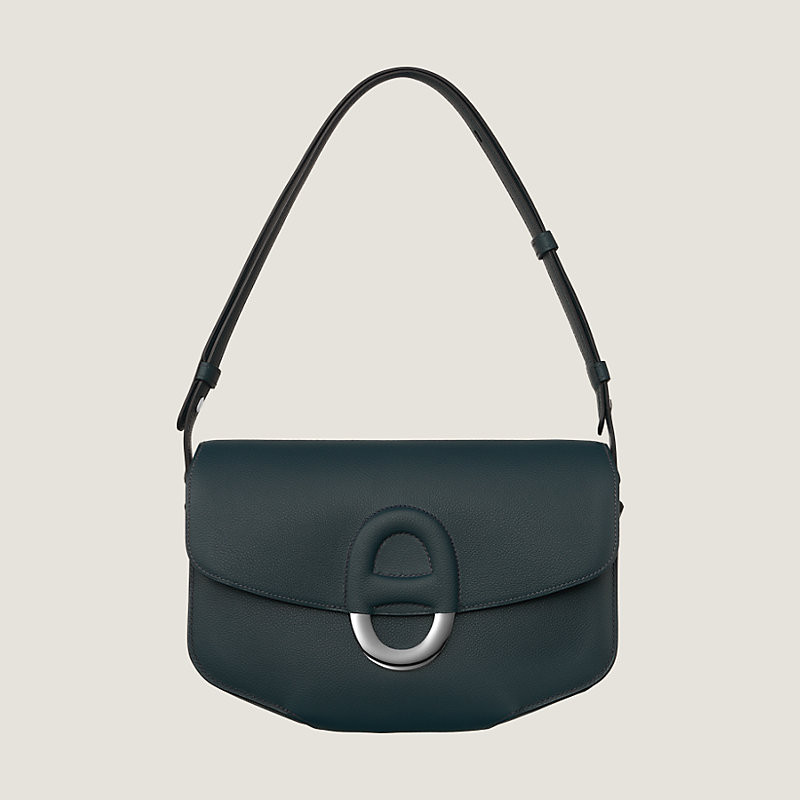 Sac en veau Evercolor, garnitures finition argenté palladié, nouveau fermoir maillon Chaîne d'Ancre gainé de cuir au mécanisme invisible, deux poches plates, bandoulière ajustable pour un porté épaule court ou long à la hanche
