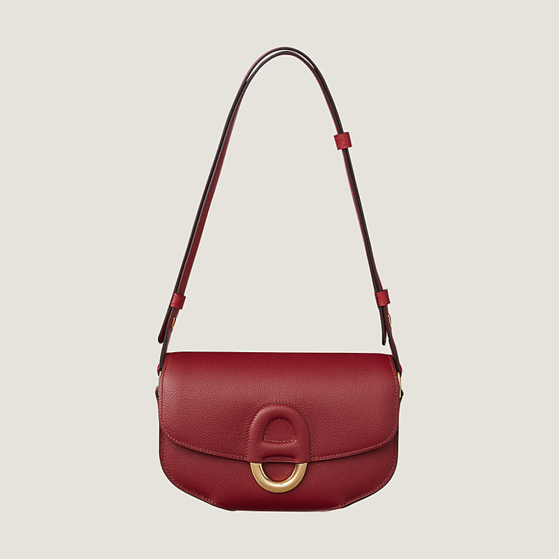 Sac en veau Evercolor, fermé par une patte en cuir et un bouton à pression, garnitures plaquées or, bandoulière réglable