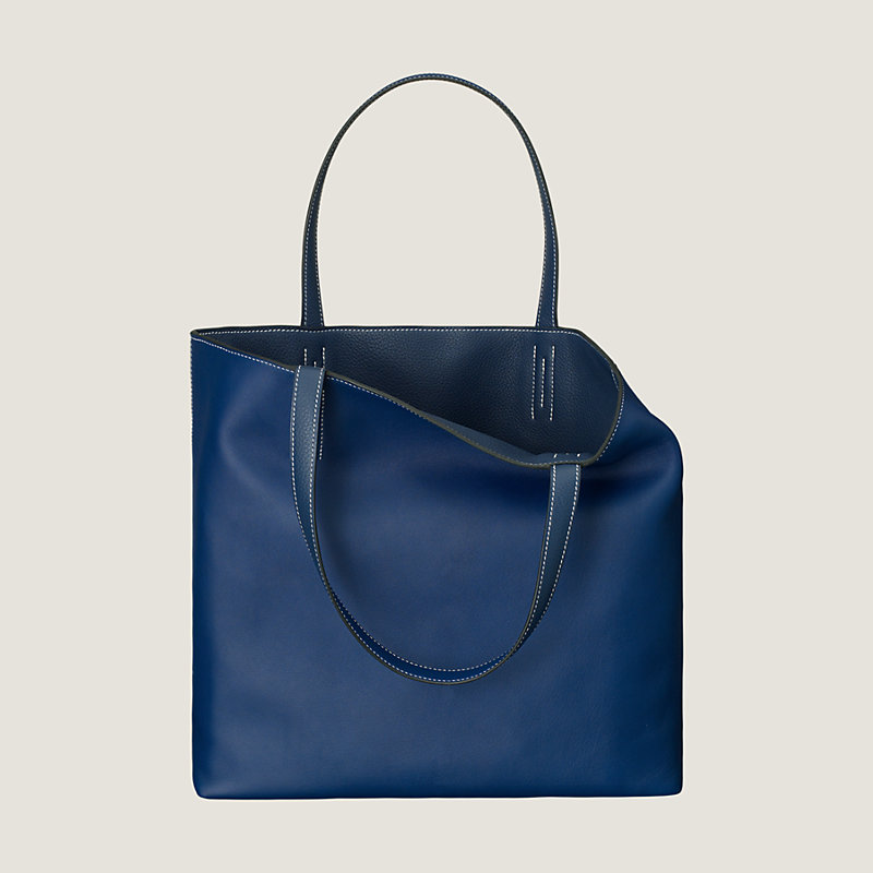 Sac cabas réversible en cuir Taurillon Clémence et veau Swift, porté main ou épaule