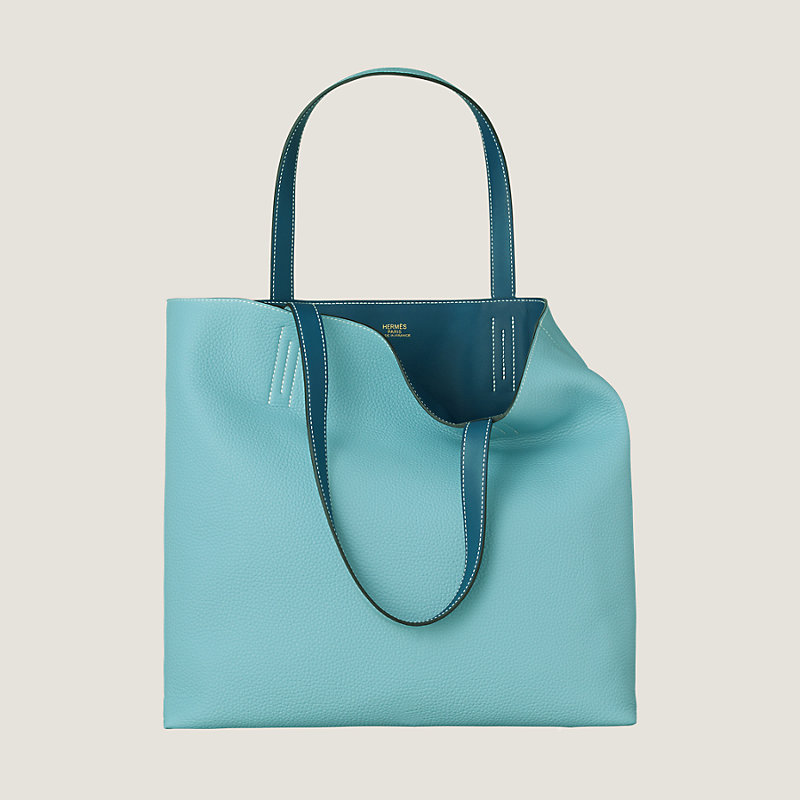 Sac cabas réversible en cuir Taurillon Clémence et veau Swift, porté main ou épaule
