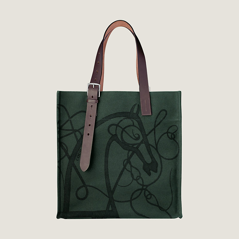 Sac shopping en toile Goéland imprimé « Coup de Fouet » et vache Hunter, poignées réglables pour un porté main ou épaule, finitions en métal argenté palladié, une poche volante intérieure gansée cuir