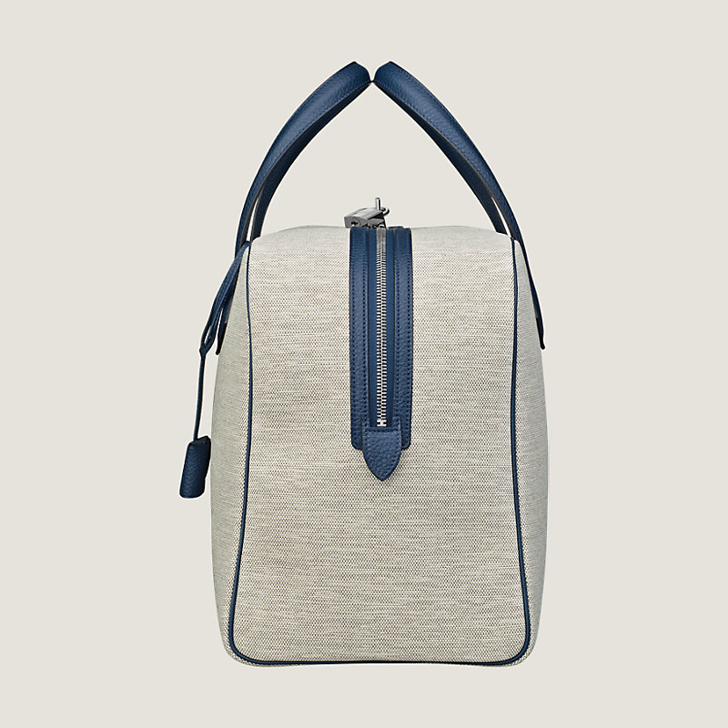 Sac fourre-tout en cuir Taurillon Clémence et toile H Tech mini, doublure en toile tissage chevron et ganse intérieure en coton ton sur ton avec le cuir extérieur, garnitures en métal argenté palladié, fermeture zippée, porté main, creux de bras ou épaule