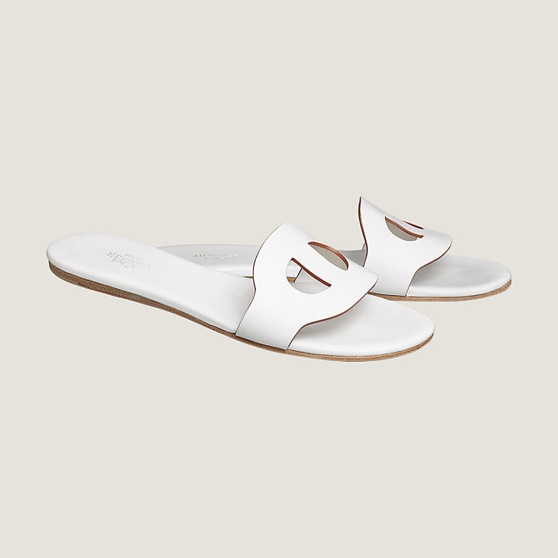 Sandales en veau, tranches ton sur ton, semelle en cuir