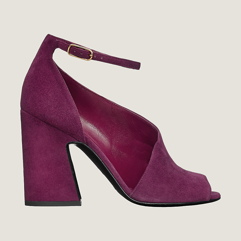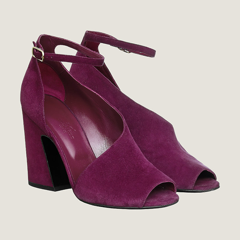 Sandales en chèvre velours, boucle permabrass, talon recouvert de chèvre velours