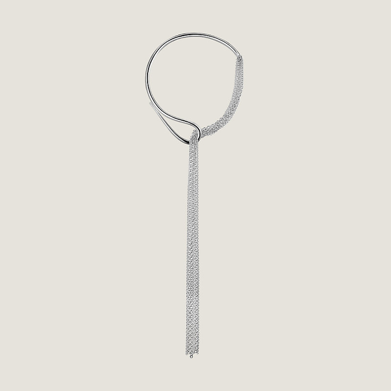 En 1927, ces savoir-faire lui inspirent son tout premier bijou : le bracelet Filet de selle met en scène un mors miniature en argent sur un bracelet de cuir. Depuis, le thème du harnachement ne cesse de nourrir la bijouterie : mors, harnais, chaînes et boucleries se stylisent au gré des collections, en or et en argent.