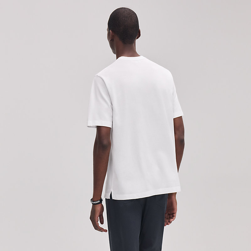 T-Shirt col rond à manches courtes avec broderie H, en piqué de coton, poche poitrine (100 % coton)