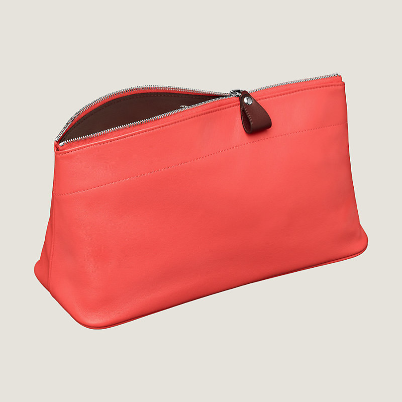 Trousse en agneau Milo et veau Swift, doublure contrastée en veau Swift et toile chevron, fermeture à glissière argentée palladiée