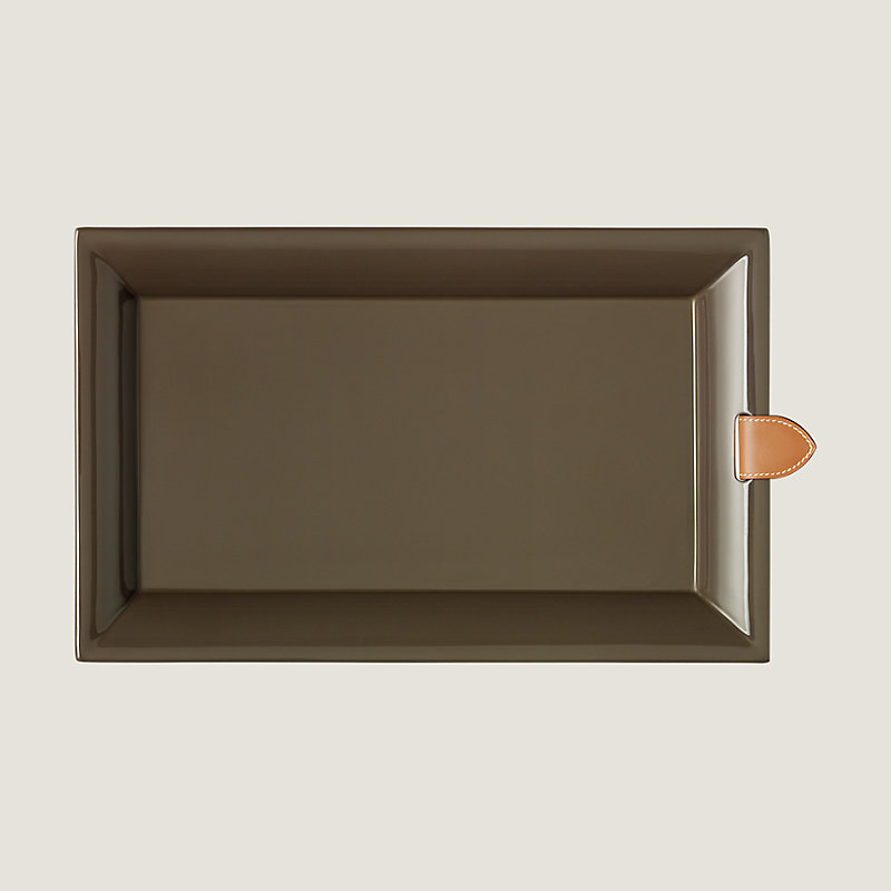 Vide-poche long en bois laqué main et patte en veau Chamonix