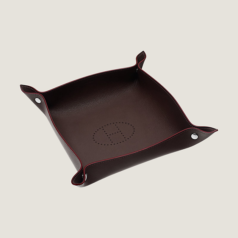 Vide-poche uni en taurillon Essentiel avec pressions nickelées