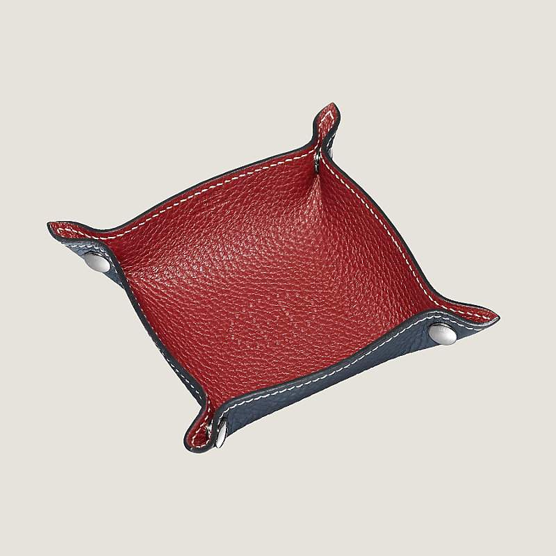 Vide-poche bicolore Mini en taurillon Clémence avec pressions nickelées et signature « H » perforé