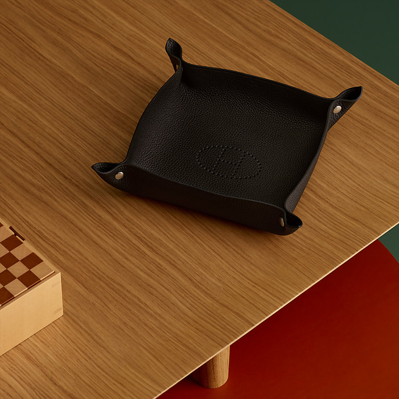 Ablage mit Druckknöpfen aus Clémence-Jungstierleder, vernickelte Druckknöpfe.