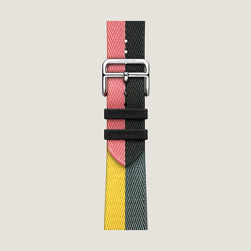 Das von den Seidenjacken der Jockeys inspirierte Armband verleiht Ihrer Apple Watch Hermès einen farbenfrohen, sportlichen Look.