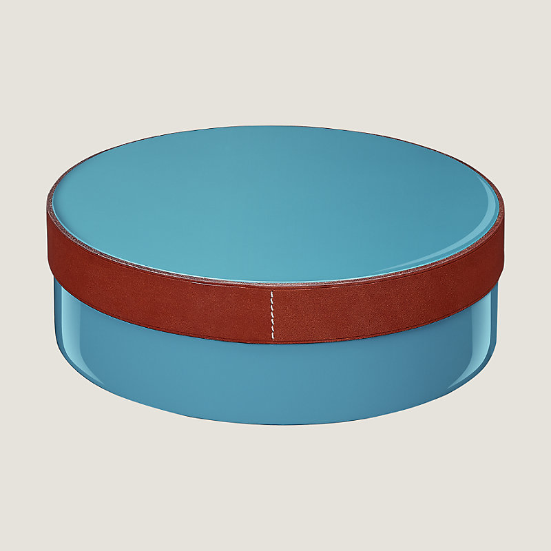 Box aus lackiertem Holz und Zaum-Rindsleder