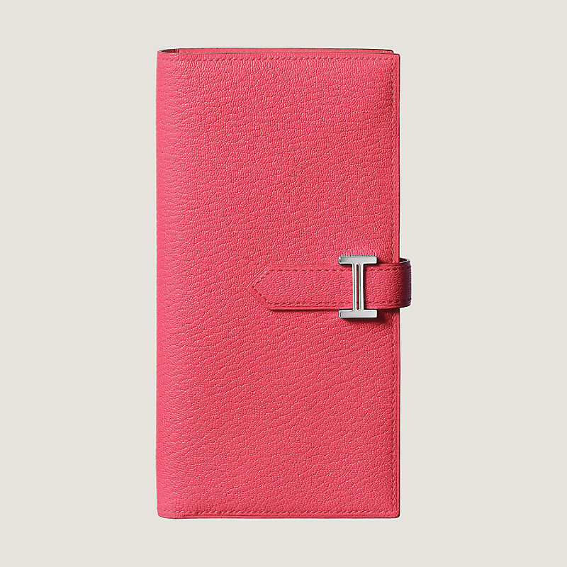 Brieftasche aus Mysore-Ziegenleder mit Einschubfach, Verschluss durch Lederriemen und "H"-Schließe mit Silber- und Palladiumauflage