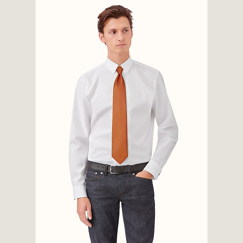 Diese einfarbige Krawatte offenbart ihr Jacquard-Gewebe im Spiel mit dem Licht. Ein echtes Hermès-Basic!