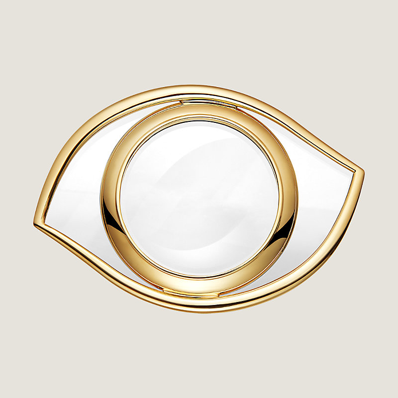 Lupe aus vergoldetem Messing , Glas mit 2,5-facher Vergrößerung.