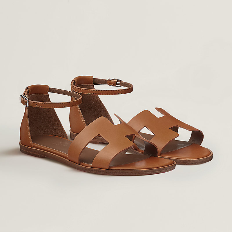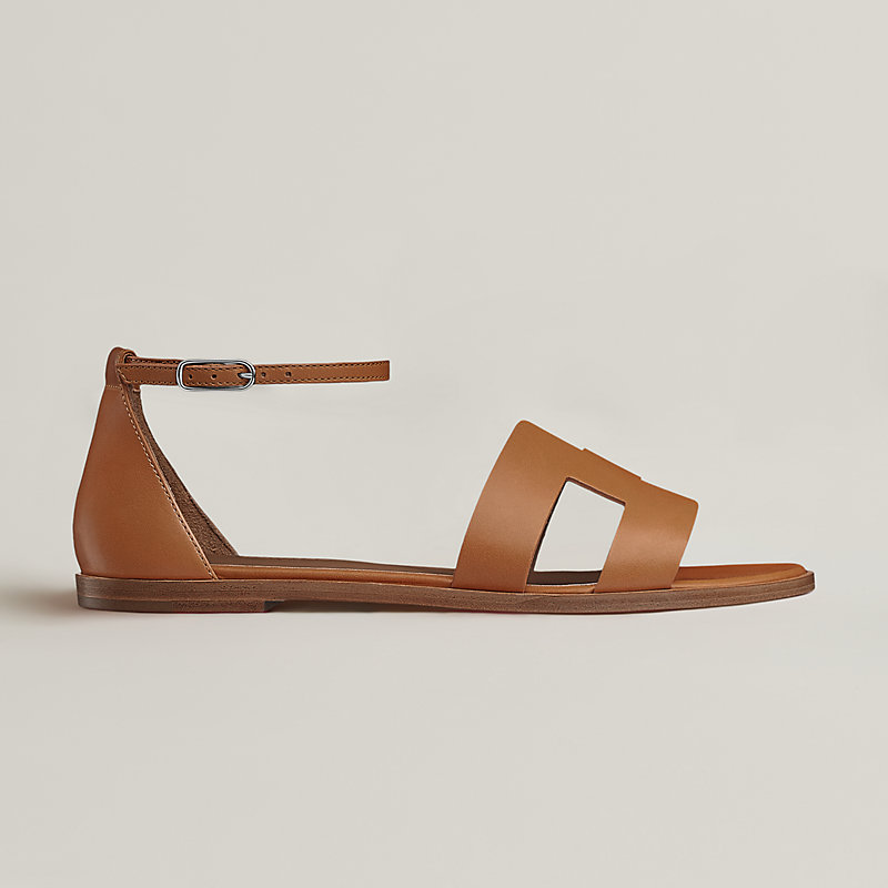 Emblematische Sandalen aus Kalbsleder mit schmalem Knöchelriemen, Schnittkante