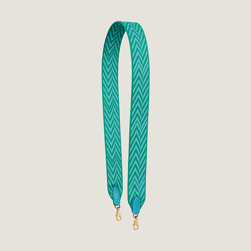 Schulterriemen aus Zigzag-Gurt und Swift-Kalbsleder, vergoldeter Schmuck, großer Karabiner